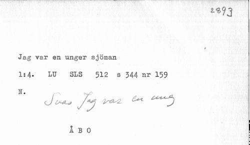//// Jag var en unger sjöman //// ls4. LU SLS 512 s 344 nr 159 //// S. ^ //// / //// ÅBO i //// ¦ //// ¦ //// i ////