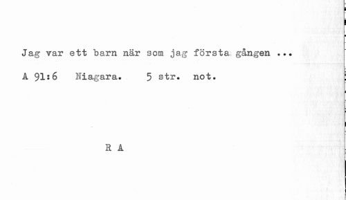 //// ¦ //// j ¦ //// Jag var ett barn när som. jag första, gången ... //// A 9156 Niagara. 5 str. not. j //// ¦ //// i //// R A ////