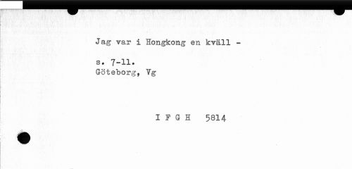 //// Jag Tar i Hongkong en kTäll - //// s • 7-11. //// Göteborg, Yg //// I F G H 5814 //// i •'•iiilP* ////