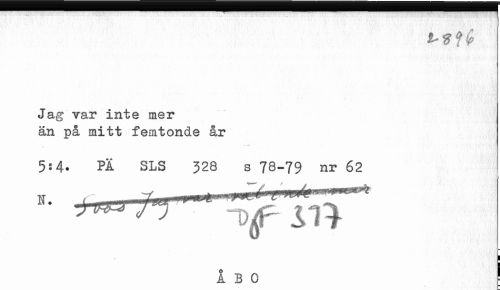 //// 7 .• r "". " -v v. •' " " ... "... " . "...• •. * ' "• ¦ -y---? - ¦-...- - - - • •: * • - - • //// Jag var inte mer än på mitt femtonde år //// * _»¦ //// 5:4. PÄ SLS 328 s 78-79 nr 62 //// I b o j ////