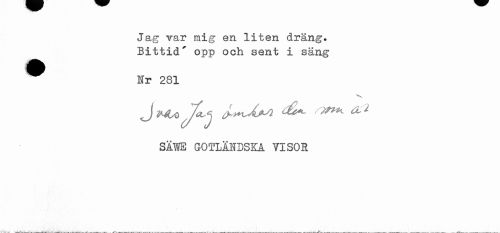 //// Jag var mig en liten dräng* Bittid' opp och sent i säng //// Nr 281 //// V //// Julo dU //// SÄ1E GOTLÄNDSKA VISOR ////