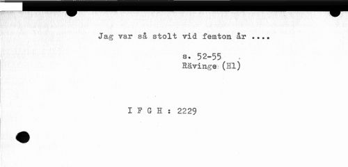 //// Jag rar så stolt vid femton år ... //// s. 52-55 //// Hävinge (Hl) //// I 3? G H : 2229 //// ¦¦i ////