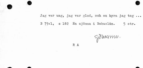 //// •k //// I //// Jag rar ung, jag var glad, och en hyra jag tog1 ... B 79*1» s 182 Bn sjöman i Bohuslän. 5 str. //// ^^ICfYWJ > //// R A ////