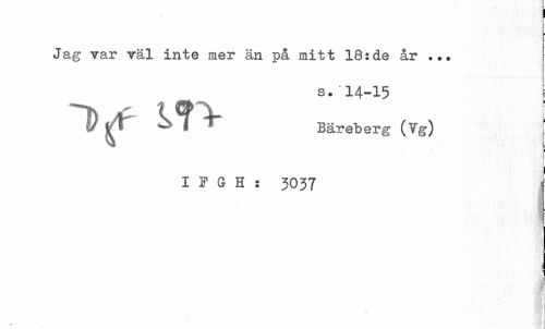 //// Jag var väl inte mer än på mitt 18sde år ... //// s. 14-15 i //// ""T) jrt"" ^ I Bäreberg (?g) //// 1 //// IIGI: 5037 | //// i //// * //// lm f //// i I //// 1 //// / i //// i ////