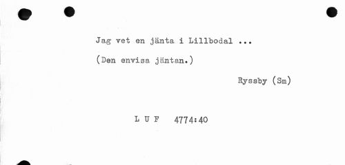 //// .. • v . . //// Jag vet en jänta i Lillbodal ... (Den envisa jäntan.) //// Ryssby (Sm) //// ID? 4774:40 ////