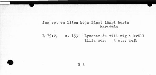 //// i //// Jag vet en liten koja långt långt borta //// härifrån //// B 79^2, s. 133 Lyssnar du till mig i kväll //// lilla mor. 4 str. ref. ////