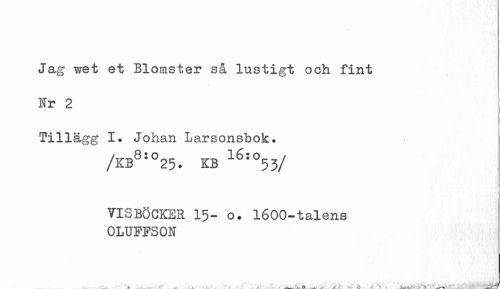 //// Jag wet et Blomster så lustigt och fint //// Hr 2 //// Tillägg I. Johan Larsonsbok. //// /KB8:o25. KB 16:o53/ //// I //// 718BÖCKER 15- o. 1600-talens 0LUFFS01 ////
