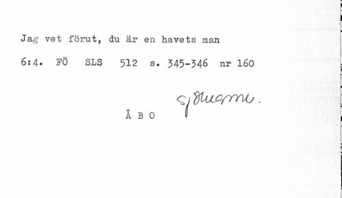 //// I //// I //// Jag vet förut, du är en havets man //// 6:4. FÖ SLS 512 s. 345-346 nr 160 ; //// ¦ //// I //// o 'cJki£/'mo. ; //// ÅBO V | //// i | //// : B ////