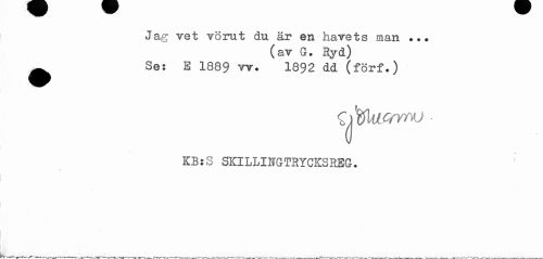 //// Jag vet vörut du är en hårets man //// (ar G. Ryd) //// ^ Ses S 1889 vr. 1892 dd (förf.) ////