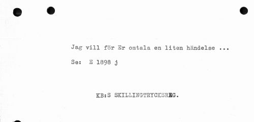 //// Jag vill för Er omtala en liten händelse ... Se: E 1898 j //// KB:S SKILLINGTRYCKSRKG. ////