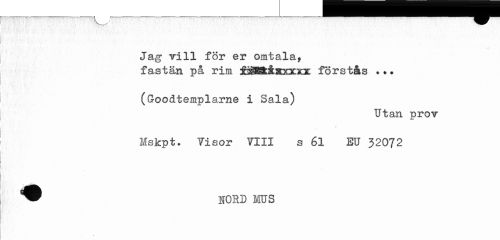 //// -...---/---J - //// Jag Till för er omtala, //// fastän på rim fiMtitxxxxx förstås . •• //// (G-oodtemplarne i Sala) //// Utan proT //// läx //// t //// Mskpt. Tisor VIII s 61 EU J2072 //// .jäp Bt //// ™ NORD MUS ////