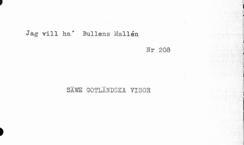//// I //// I //// / //// Jag vill ha' Bullens Hallen //// ! //// Nr 208 SÄVffi GOTLÄNDSKA YISOH //// ) ////