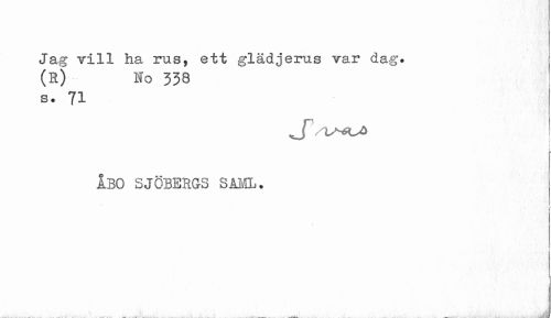 //// Jag vill ha rus, ett glädjerus var dag. (R) lo 338 //// s. 71 //// ÅBO SJÖBERGS SÅML. //// 1 //// i //// . -. J ////