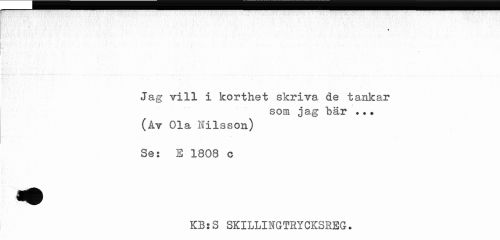 //// Jag vill i korthet skriva de tankar //// som jag bär ?.• //// (åv Ola Ifilsson) Se: E 1808 c //// KB:3 SKILLIlf GTBYCKSREG* ////