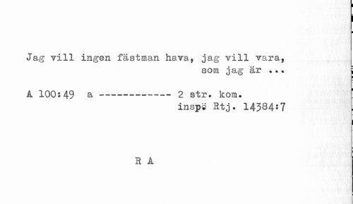 //// i I //// Jag Till infen fästman hava, jag vill Tara, //// som jag ar ... i //// ¦ //// Å 100:49 a---2 str. kom. ! //// inspö Stj. 14334*7 //// 1 ¦ //// 1 A ////