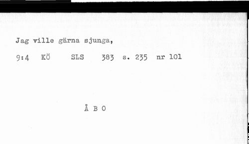//// Jag ville gärna sjunga, //// 9j4 KÖ SLS 383 s. 235 nr 101 //// ÅBO //// ¦ ¦ ¦ ////
