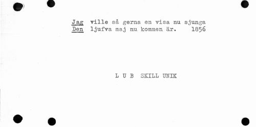 //// Jag ville så gerna en visa nu sjunga Den ljufva maj nu kommen är. I856 //// L U B SKILL UNIK ////