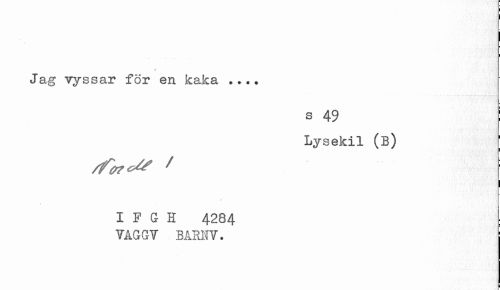 //// i //// I //// I //// 9 //// Jag vyssar för en kaka ... //// s 49 | //// Lysekil (B) ; //// I //// I F G H 4284 YAGGT BÅRFV". ////