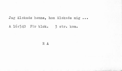 //// Jag älskade henne, hon älskade mig A 16:540 För klok» 3 str» kom» //// R A ////