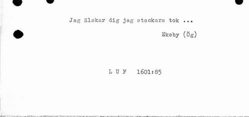 //// Jag älskar dig jag stackars tok ... //// Ekeby (Ög) //// L U F 1601:85 //// , ---___.^... ___ ////