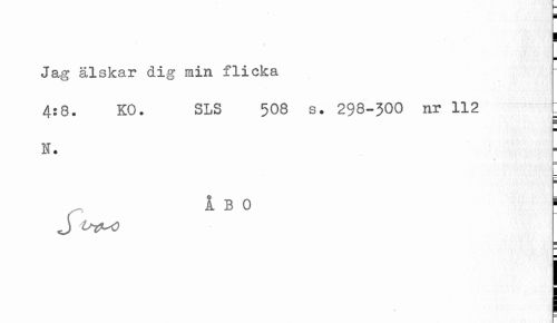//// ¦ //// I ¦ //// Jag älskar dig min flicka //// 4:8. KO. SLS 508 s. 298-JOO nr 112 ; //// N. //// v //// ÅBO 1 //// J O-r^o //// | //// r ////