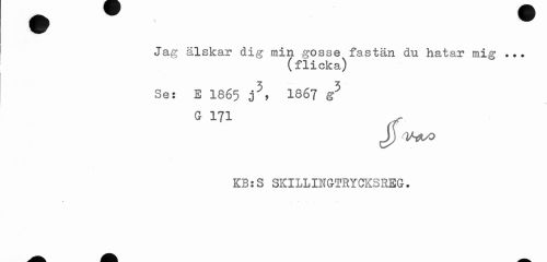 //// Jag älskar dig min gosse fastän du hatar mig ... //// (flicka) //// Se: E 1865 1867 g5 G 171 //// J) V^uo ////