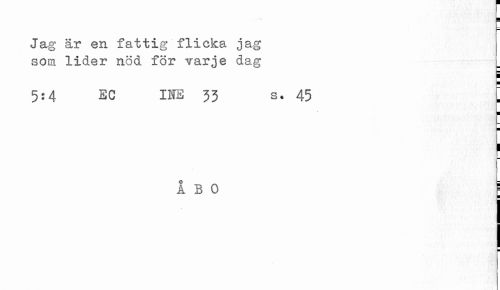 //// ¦ //// Jag är en fattig flicka jag som lider nöd för varje dag //// 5a eg ihe 33 S. 45 [ //// 1 //// ÅBO É //// ¦ //// i ////