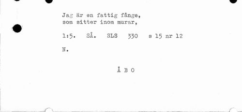 //// Jag är en fattig fånge, ^^ som sitter inom murar, //// 1:5. Si. SLS 530 s 15 nr 12 //// IT. //// ÅBO ////