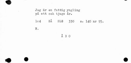 //// Jag är en fattig yngling på ett och tjugo år. //// 1:4 SÅ SLS 330 s. 140 nr 95. H. //// ÅBO ////