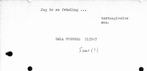 //// Jag är en främling .?• //// textangirelse mus. //// DALA PORISAL 21J0:7 ////