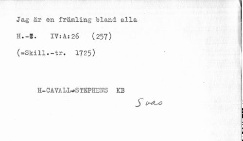//// • ' • » • ' • Jag är en främling bland alla //// h.-ffi. it:a:26 (25?) (=Skill.-tr. 1725) //// H- C ATALL»S TEPHE1I3 KB //// I //// ¦ //// ¦ ¦ //// fe ////
