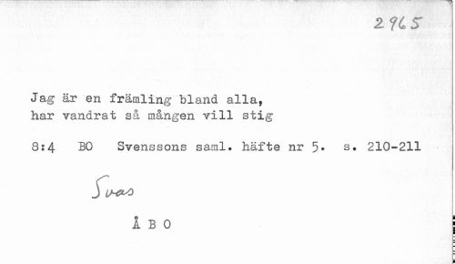 //// ZfCS //// Jag är en främling bland alla, har vandrat så mången vill stig //// 8:4 BO Svenssons saml. häfte nr 5• s# 210-211 //// I B 0 | //// i ////