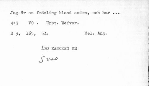 //// Jag är en främling bland andra, och har .. • 4:3 TO . TJppt. Wefvar. //// R 3, 165, 54» Mel. Ang. //// ÅBO RAHCKEN IS //// % j //// i I //// I ¦ ////