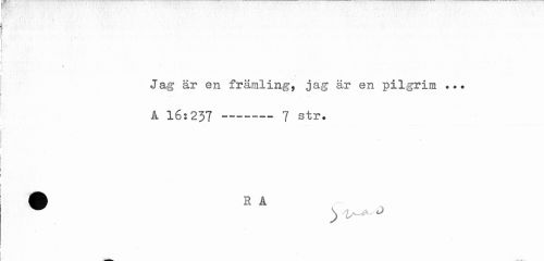//// > //// Jag är en främling, jag är en pilgrim ... //// k 16:237 --- 7 str. //// H A ////