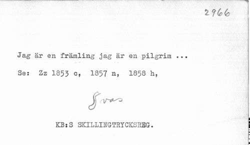 //// Ja g ar en främling jag är en pilgrim ... //// ---V . « 4- _ .. //// X //// Se: Zz 1853 c, 1857 n, 1858 h, //// KB:S SKILLIIGTHICKSHEG. \ //// 1 ////