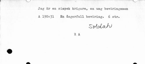 //// Jag är en simpek krigare, en ung beväringsman A 190:31 En ångerfull beväring. 6 str. //// Sfrfoi&A) //// r a ////