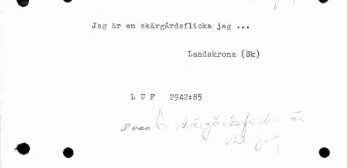 //// Jag är en skärgårdsflicka jag ... //// Landskrona (Sk) //// T. - • //// L U F 2942:85 //// " A , , - //// tv d ^^ -^f £ //// C/ i /> ty ... ////