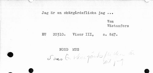 //// Jag är en skärgårdsflicka jag ... //// Vsm //// Tästanfors SU 2O3IO. Yisor III, s* 847. //// nord mus //// • c/W* //// 1 j...7 ////