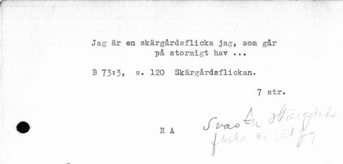 //// ... .. //// Jag är en skärgårdsflicka jag, som går //// på stormigt hav ... //// « • • - //// B 73:3, s. 120 Skärgårdsflickan. //// 7 str. //// A Q...¦ - /» //// / i/// / r / '/•/ //// _ r 4?. <ftt //// • RA Jf**^ f I //// UhJu, "fl //// V ////