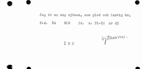 //// jfljm^^r ^^^^ //// Jag är en ung sjöman, som glad och lustig är, //// 6i4. IfA SLS 24. s. 91-92 nr 43 //// ^UxprrrvJ > //// ÅBO / ////