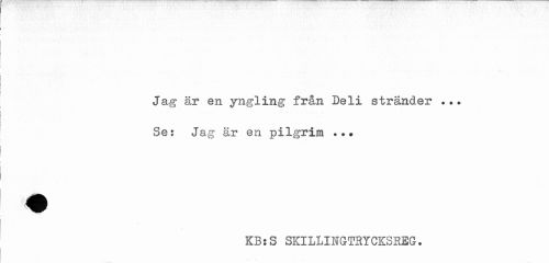 //// Jag är en yngling från Deli stränder Se? Jag är en pilgrim //// KB:S SKILLINGTRYCKSREG. ////
