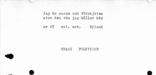 //// 0\ ' ' . .' , //// Jag är ensam och förskjuten utar den vän jag håller kär //// nr 87 mel. not. Nyland //// BRÅGE FOLOTSOS //// i / ////