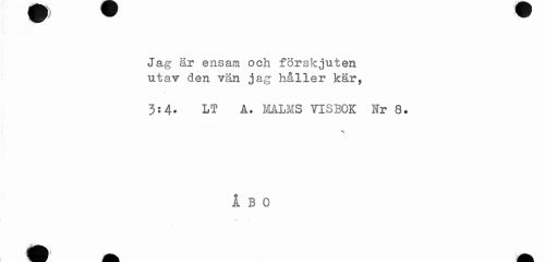 //// Jag är ensam och förskjuten utav den vän jag håller kär, //// 3:4* LT A. malms VISBOK Nr 8. //// ÅBO ////