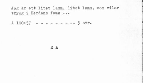 //// Ja.sc är ett litet lamm , litet lamm, som vilar trygg i Herdens famn //// A 190:57 - --- 5 str. i //// ¦ //// i //// R A //// ¦ //// f //// i ////