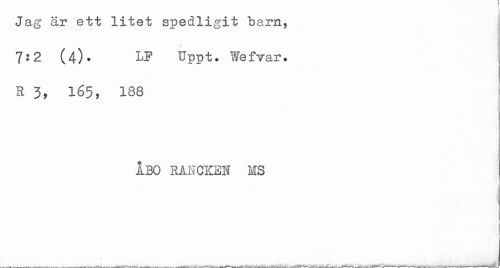 //// Jag är ett litet spedligit barn, 7:2 (4). LF Uppt. Wefvar. R 3, 165, 188 //// ÅBO RANCKEJf MS ////