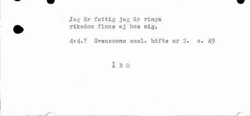 //// ! Jag är fattig jag är ringa ^^ rikedom finns ej hos mig, //// 4«4*? Svenssons saml. häfte nr 2. s. 49 //// ÅBO //// ___...r-_ ////