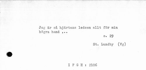 //// Jag är så hjärtans ledsen allt för min högra hand ?•? //// s. 29 St. Lundby (7g) //// mtk //// I F G H : 2106 ////