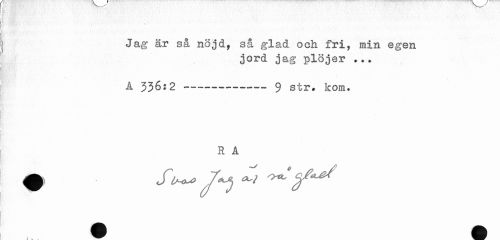 //// Jag är så nöjd, så glad och fri, min egen //// jord jag plöjer ... //// Å 336: 2---¦--- 9 str. kom. //// R A ////