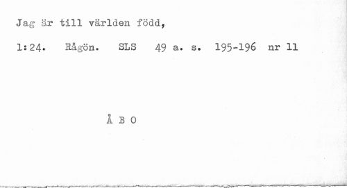 //// Jag är till världen född, //// 1:24. Rågön. SLS 49 a. s. 195-196 nr 11 //// ibo ////