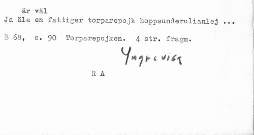 //// ar val //// Ja äla en fattiger torparepojk hoppsunderulianlej ... B 68. //// s. 90 Torparepojken. 4 str. fragm. I //// 7 K 4 //// a a //// i ////